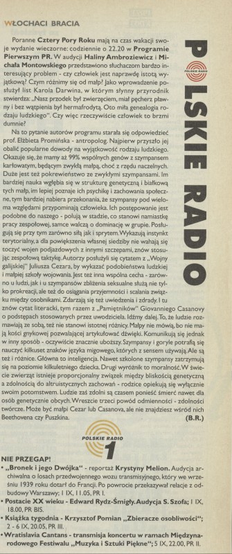 Archiwum / Artykuł nr specjalny 35/1996 10/18 Podziel się Tytuł Włochaci bracia Autor B.R. Kategoria Artykuł Artykuł z numeru nr specjalny 35/1996 Data wydania 1 września 1996 Tagi Polskie Radio audycje