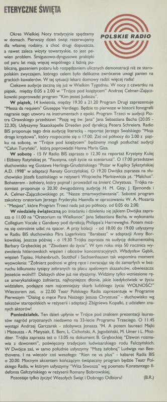 Archiwum nr 2599 (16/1995) 39/48 Podziel się Tytuł Polskie radio Artykuł z numeru 2599 (16/1995) Data wydania 10 kwietnia 1995 Tagi radio
