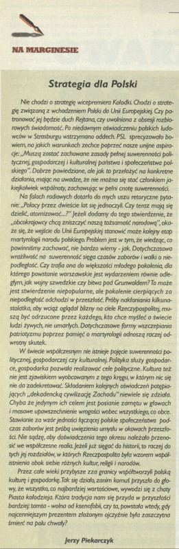 Archiwum / Felieton nr specjalny 36/1996 86/138 Podziel się Tytuł Na marginesie. Strategia dla Polski Autor Jerzy Piekarczyk Kategoria Felieton Artykuł z numeru nr specjalny 36/1996 Data wydania 9 sierpnia 1996 Tagi polityka Polska strategia