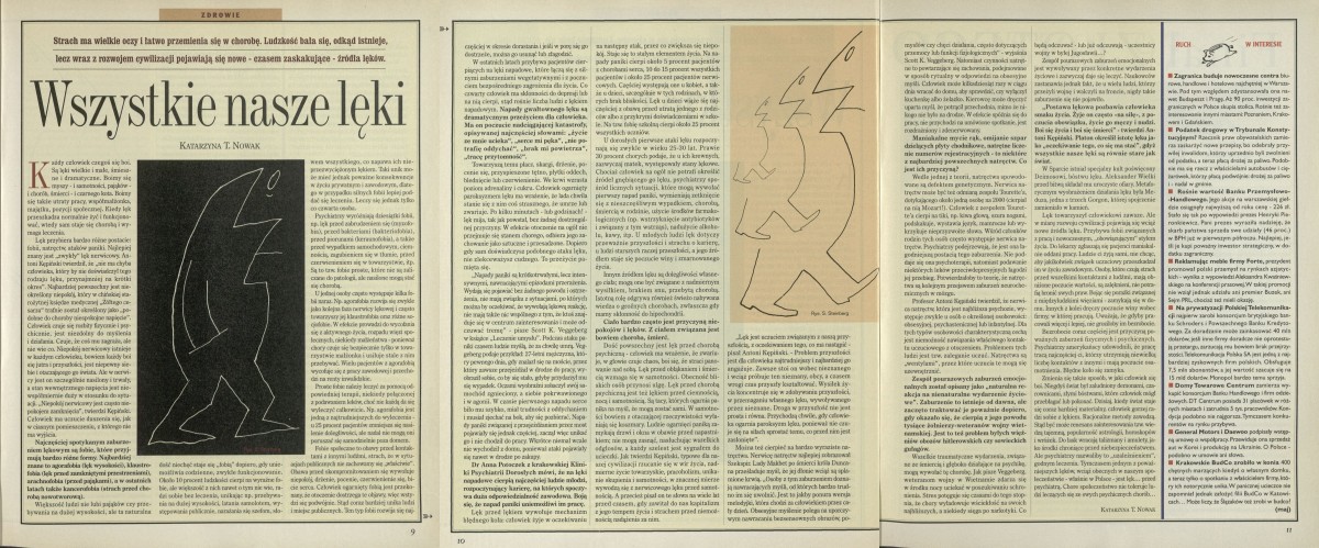 Archiwum / Pogadanki Medyczne nr 2747 (27/1998) 1/5 Podziel się Tytuł Wszystkie nasze lęki Autor Katarzyna Nowak Rubryka Pogadanki Medyczne Artykuł z numeru 2747 (2748/1998) Data wydania 15 lutego 1998 Tagi leki fobie