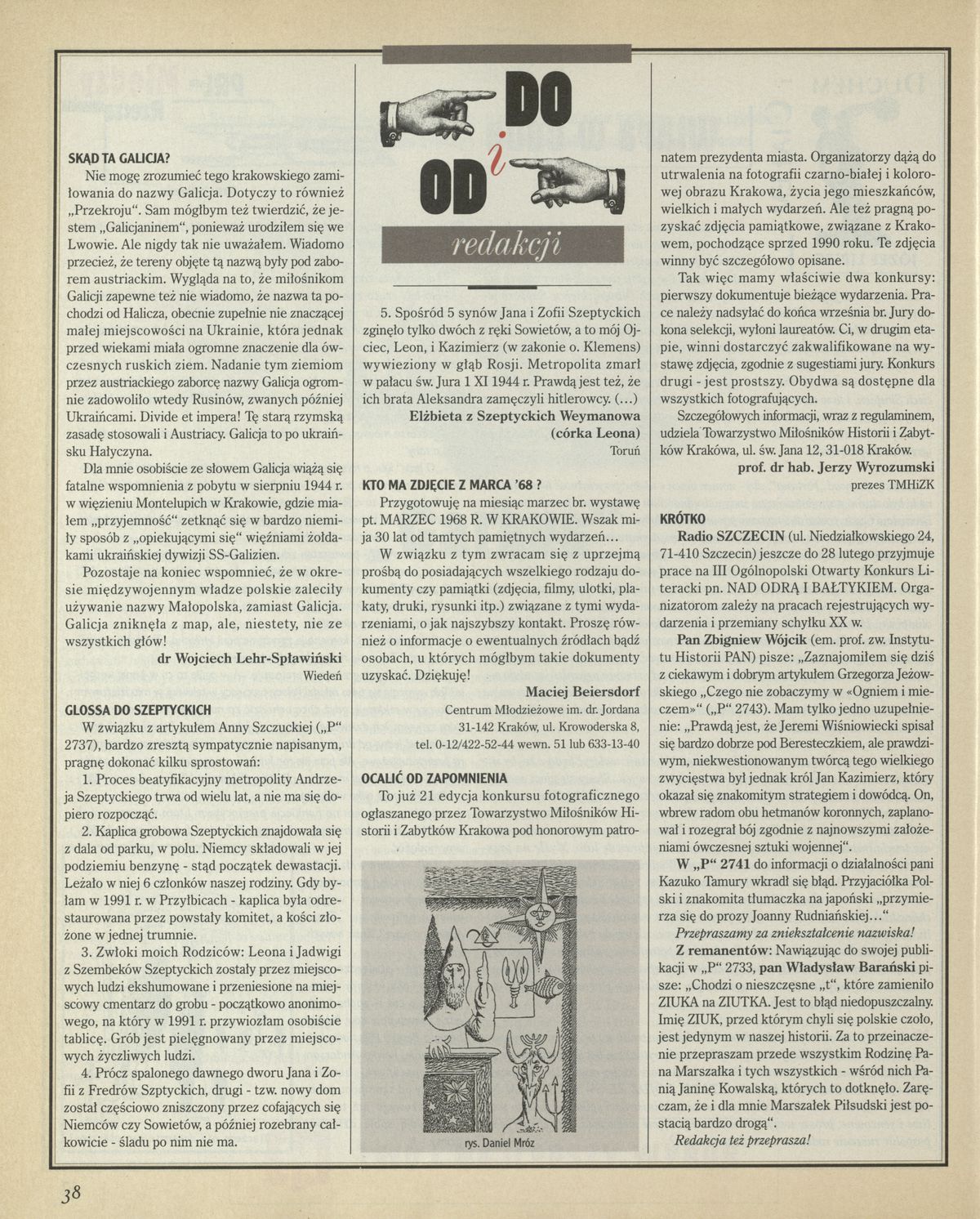 Archiwum / Listy do i od redakcji nr 2747 (27/1998) 16/117 Podziel się Tytuł Listy do i od redakcji Rubryka Listy do i od redakcji Artykuł z numeru 2747 (2748/1998) Data wydania 15 lutego 1998 Tagi listy redakcja