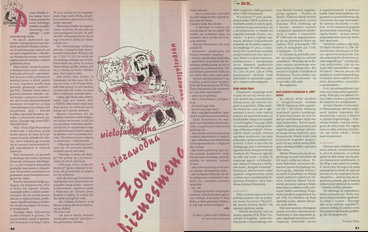 Archiwum / Artykuł nr 2682 (46/1996) 34/74 Podziel się Tytuł Wyspecjalizowana, wielofunkcyjna i niezawodna żona biznesmena Autor Elzbieta Bartosik Trebicka Kategoria Artykuł Artykuł z numeru 2682 (46/1996) Data wydania 17 listopada 1996