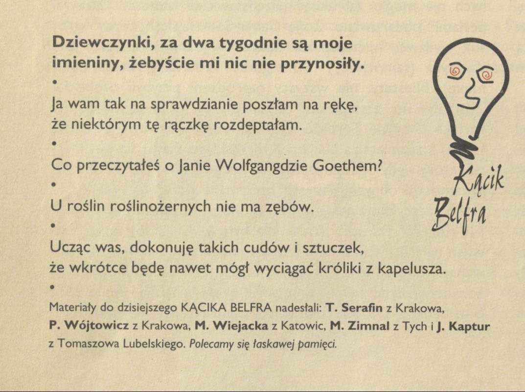 Archiwum / Rozmaitości nr 2596 (13/1995) 66/249 Podziel się Tytuł Kącik Belfra Kategoria Rozmaitości Artykuł z numeru 2596 (13/1995) Data wydania 26 marca 1995