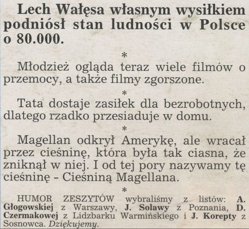 Archiwum / Humor zeszytów szkolnych nr 2596 (13/1995) 215/1181 Podziel się Tytuł Humor zeszytów Rubryka Humor zeszytów szkolnych Artykuł z numeru 2596 (13/1995) Data wydania 26 marca 1995