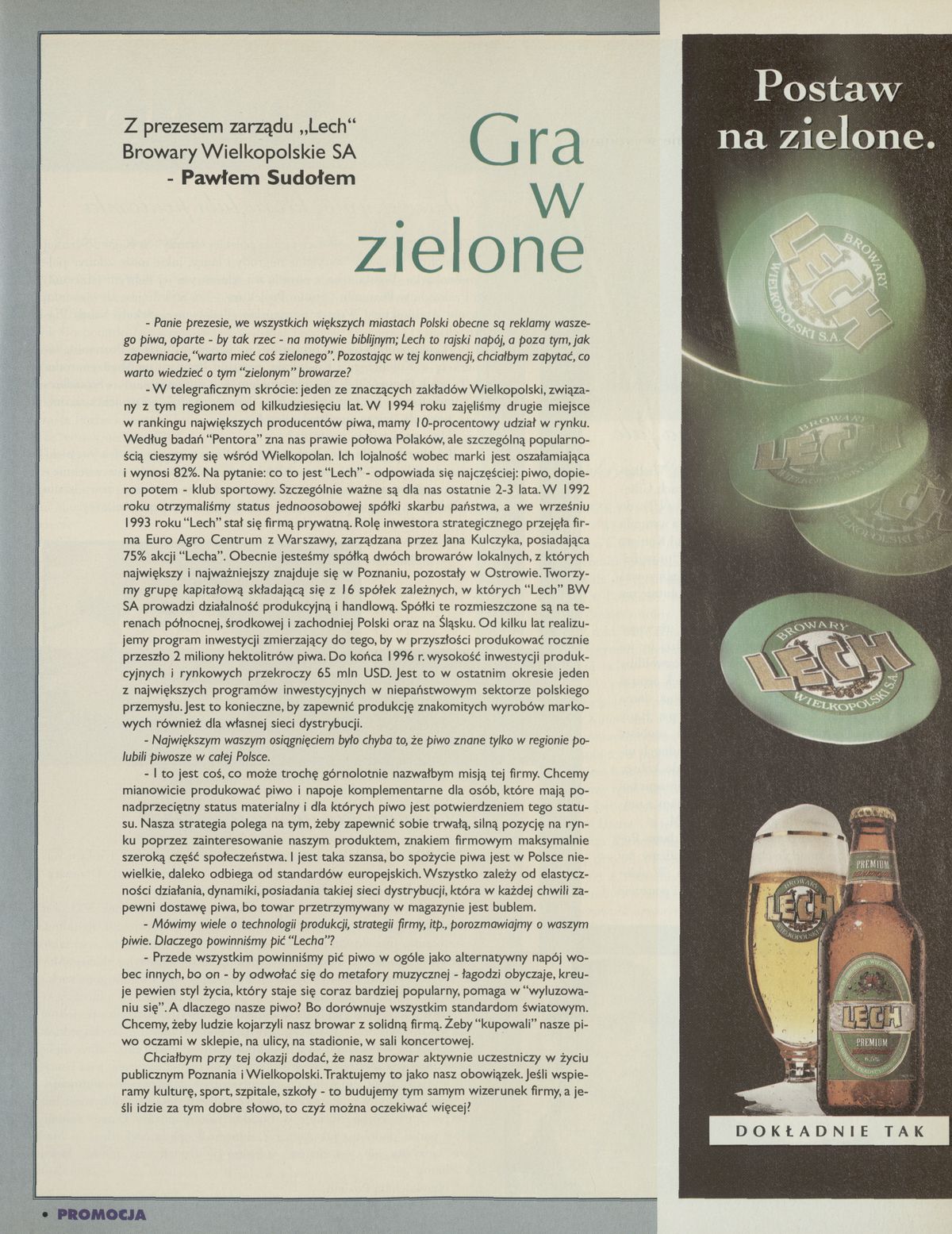 Archiwum / Reklamy nr 2623 (40/1995) 214/323 Podziel się Tytuł Gra w zielone Rubryka Reklamy Artykuł z numeru 2623 (40/1995) Data wydania 1 października 1995