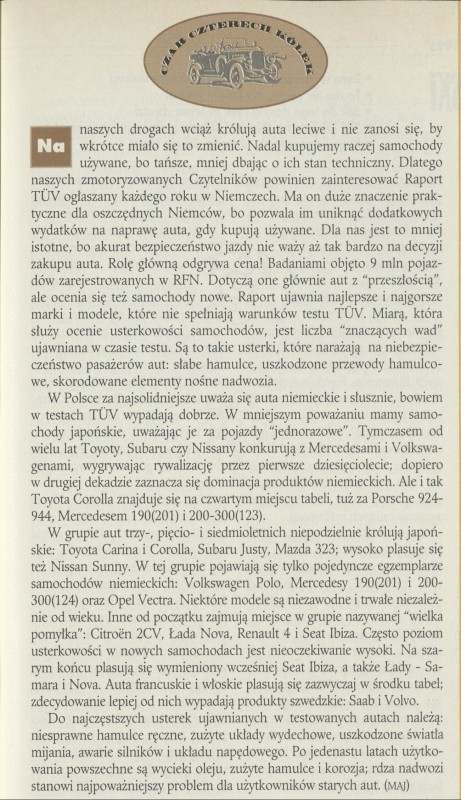 Archiwum / Czar Twoich kółek nr 2603 (20/1995) 06/12 Podziel się Tytuł Czar czterech kółek Rubryka Czar Twoich kółek Artykuł z numeru 2603 (20/1995) Data wydania 14 maja 1995