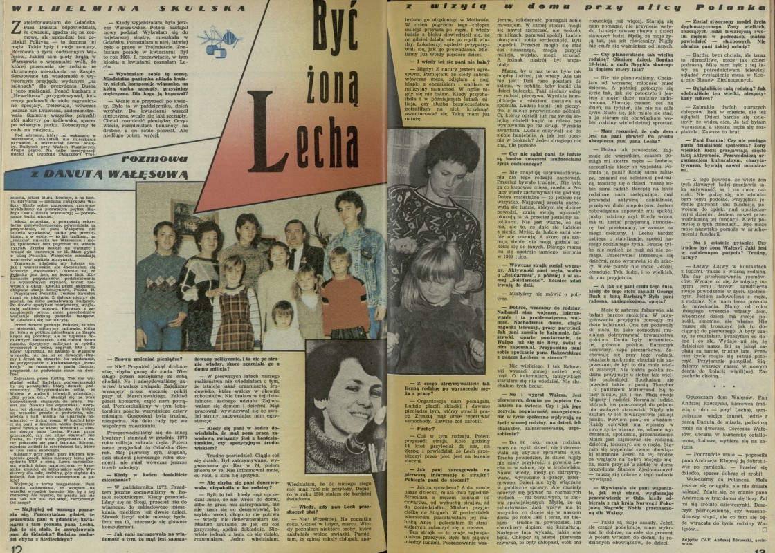 Archiwum / Rozmowy „Przekroju” nr 2321-23 (49-51/1989) 798/800 Podziel się Tytuł Być żoną Lecha - rozmowa z Danutą Wałęsową Autor Skulska Wilelmina Rubryka Rozmowy „Przekroju” Artykuł z numeru 2321-23 (49/1989) Data wydania 17 grudnia 1989