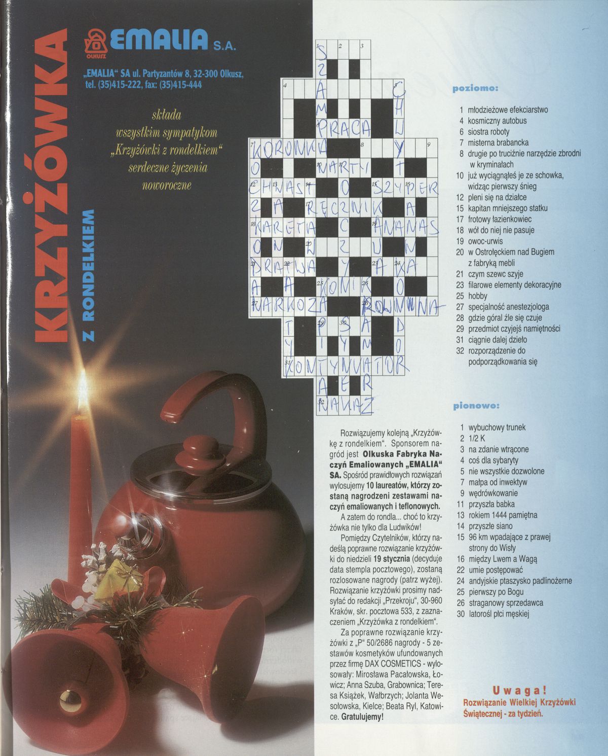 Archiwum / Krzyżówka nr 2690 (02/1997) 9277/123969 Podziel się Tytuł krzyzówka Rubryka Krzyżówka Artykuł z numeru 2690 (2/1997) Data wydania 12 stycznia 1997