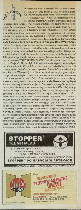 Archiwum / Tydzień w kulturze nr 2637 (01/1996) 10/19 Podziel się Tytuł Tydzień w kulturze Rubryka Tydzień w kulturze Artykuł z numeru 2637 (1/1996) Data wydania 7 stycznia 1996 Tagi Witkacy