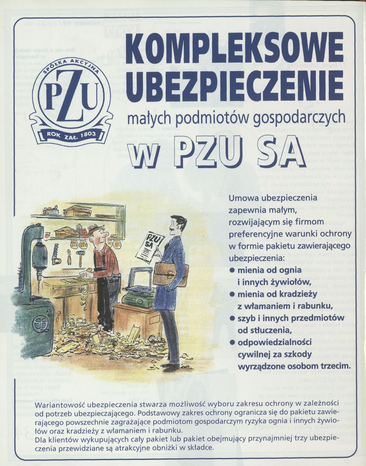 Archiwum / Reklamy nr 2685 (49/1996) 9326/121061 Podziel się Tytuł [Reklama] Rubryka Reklamy Artykuł z numeru 2685 (49/1996) Data wydania 8 grudnia 1996 Tagi pzu reklama ubezpieczenia