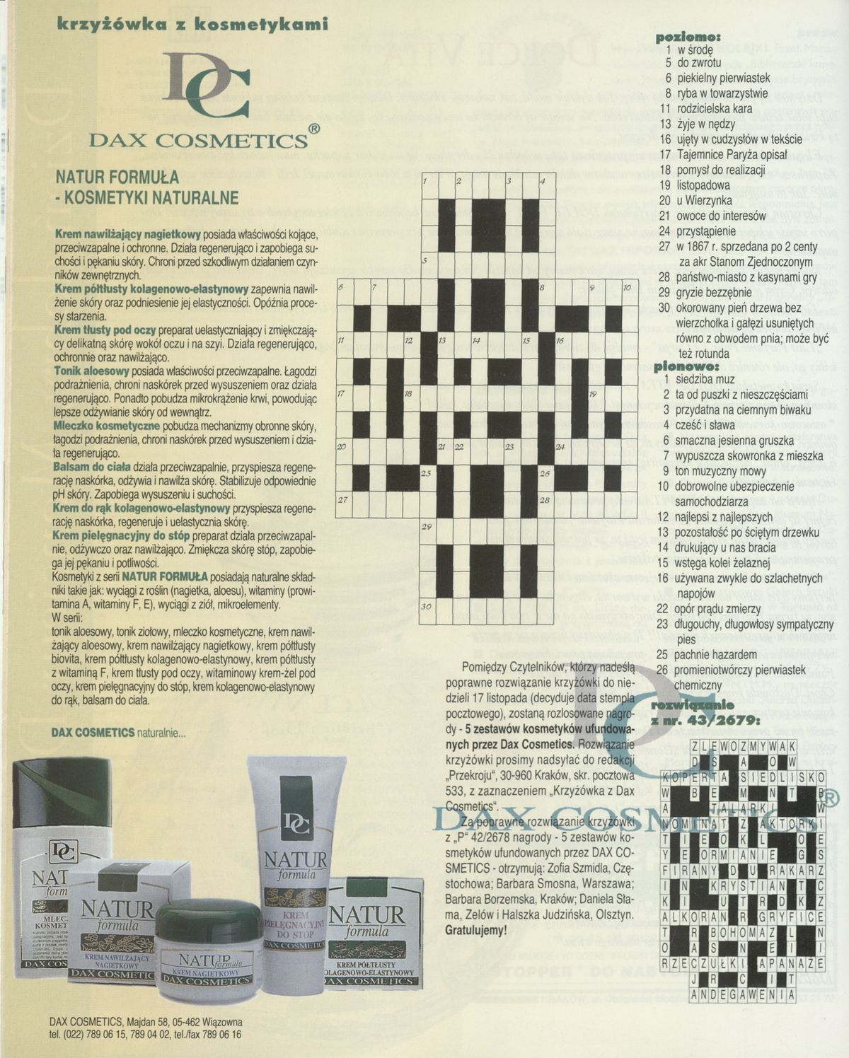 Archiwum / Krzyżówka nr specjalny 45/1996 81/174 Podziel się Tytuł Krzyżówka z kosmetykami Rubryka Krzyżówka Artykuł z numeru nr specjalny 45/1996 Data wydania 10 listopada 1996 Tagi krzyżówka rozrywka