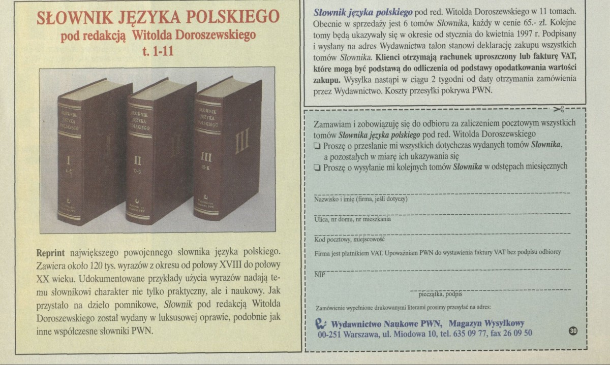 Archiwum / Reklamy nr 2689 (01/1997) 14/403 Podziel się Tytuł [Reklama] Rubryka Reklamy Artykuł z numeru 2689 (1/1997) Data wydania 5 stycznia 1997 Tagi słownik języka polskiego witold doroszewski