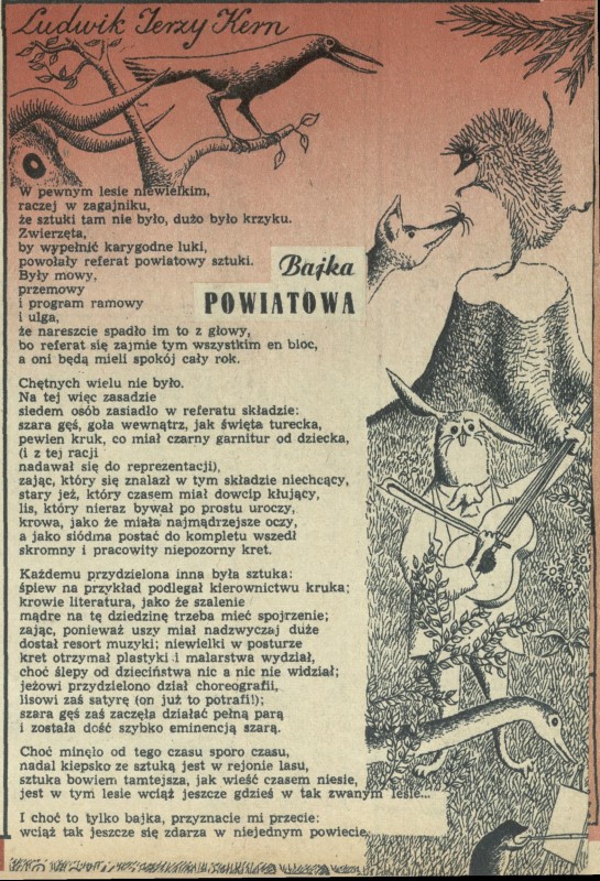 Archiwum / Rozmaitości [old] nr 473 (18/1954) 59/188 Podziel się Tytuł Bajka powiatowa Autor Ludwik Jerzy Kern Daniel Mróz Rubryka Rozmaitości [old] Artykuł z numeru 473 (18/1954) Data wydania 1 maja 1954