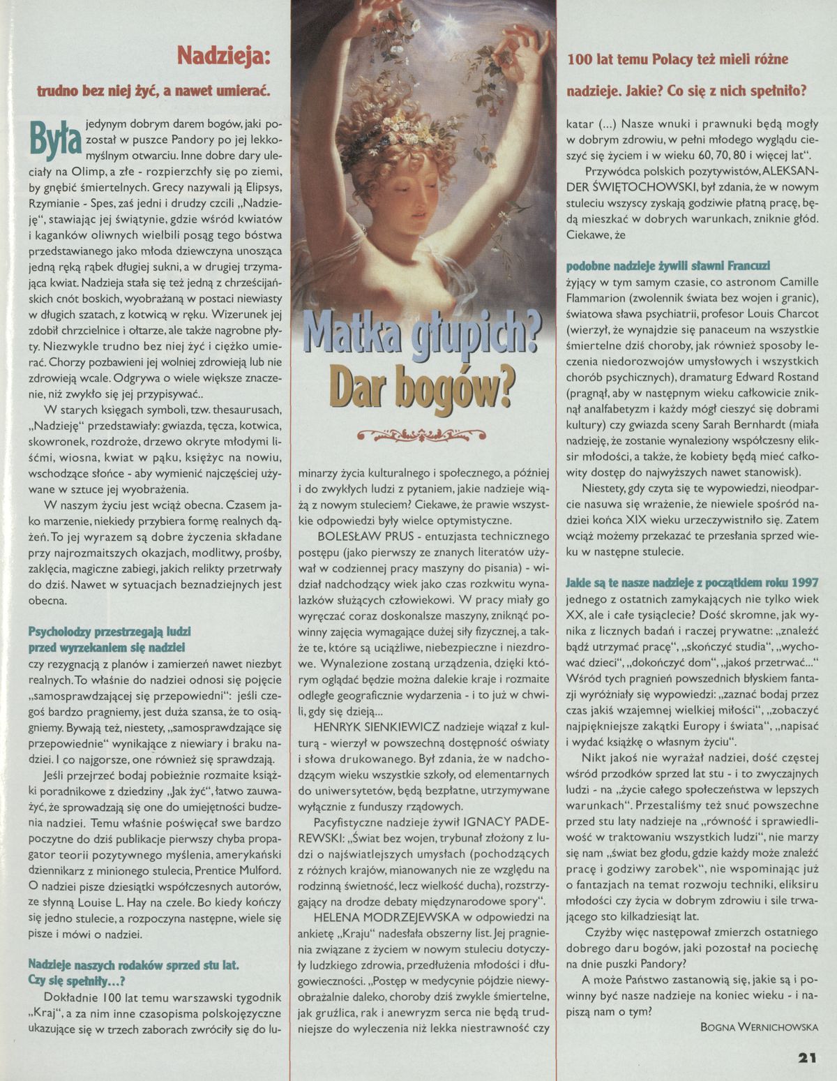 Archiwum / Artykuł nr 2692 (04/1997) 1/2 Podziel się Tytuł [Nadzieja] Autor Bo Wer Kategoria Artykuł Artykuł z numeru 2692 (4/1997) Data wydania 30 stycznia 1997 Tagi helena modrzejewska nadzieja bolesław prus