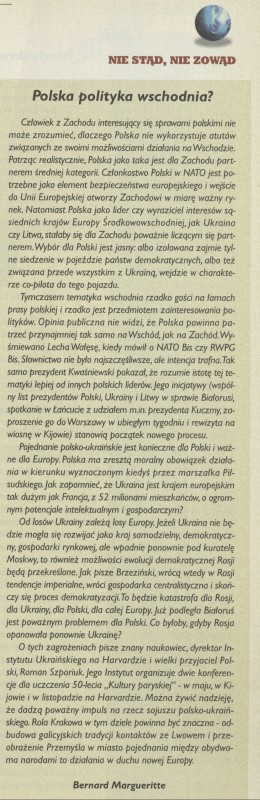 Archiwum / Felieton nr specjalny 6/1997 04/25 Podziel się Tytuł Nie stąd, nie zowąd. Polska polityka wschodnia? Autor Bernard Margueritte Kategoria Felieton Artykuł z numeru nr specjalny 6/1997 Data wydania 9 lutego 1997 Tagi polityka wschodnia Polska