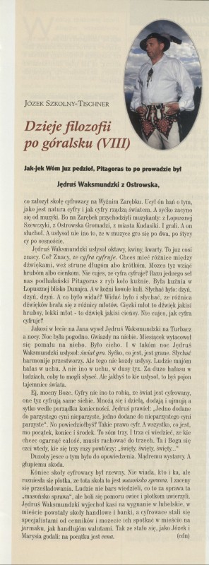 Archiwum nr 2696 (08/1997) 36/87 Podziel się Tytuł Dzieje filozofii po góralsku Autor Józek Szkolny-Tischner Artykuł z numeru 2696 (8/1997) Data wydania 23 lutego 1997 Tagi Turbacz