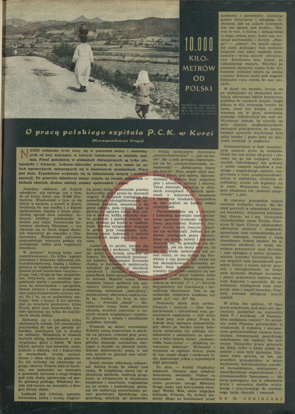 Archiwum / korespondencja własna "Przekroju" nr 442 (39/1953) 107987/123969 Podziel się Tytuł 10000 kilometrów od Polski. O pracy polskiego szpitala P.C.K w Korei Autor Mieczysław Cegielski Rubryka korespondencja własna "Przekroju" Artykuł z numeru 442 (39/1953) Data wydania 27 września 1953 Tagi medycyna Polski Czerwony Krzyż