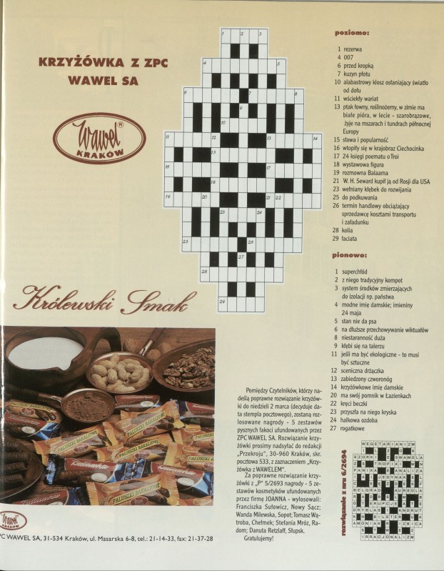 Archiwum / Krzyżówka nr 2696 (08/1997) 605/799 Podziel się Tytuł krzyżówka Rubryka Krzyżówka Artykuł z numeru 2696 (8/1997) Data wydania 23 lutego 1997 Tagi rozrywka zdrowa i tania