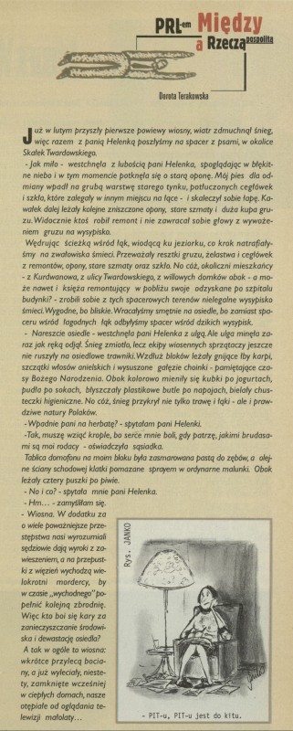Archiwum / Felieton nr specjalny 11/1997 15/61 Podziel się Tytuł Między PRL-em a Rzecząpospolitą Autor Dorota Terakowska Kategoria Felieton Artykuł z numeru nr specjalny 11/1997 Data wydania 16 marca 1997 Tagi felieton PRL Rzeczpospolita