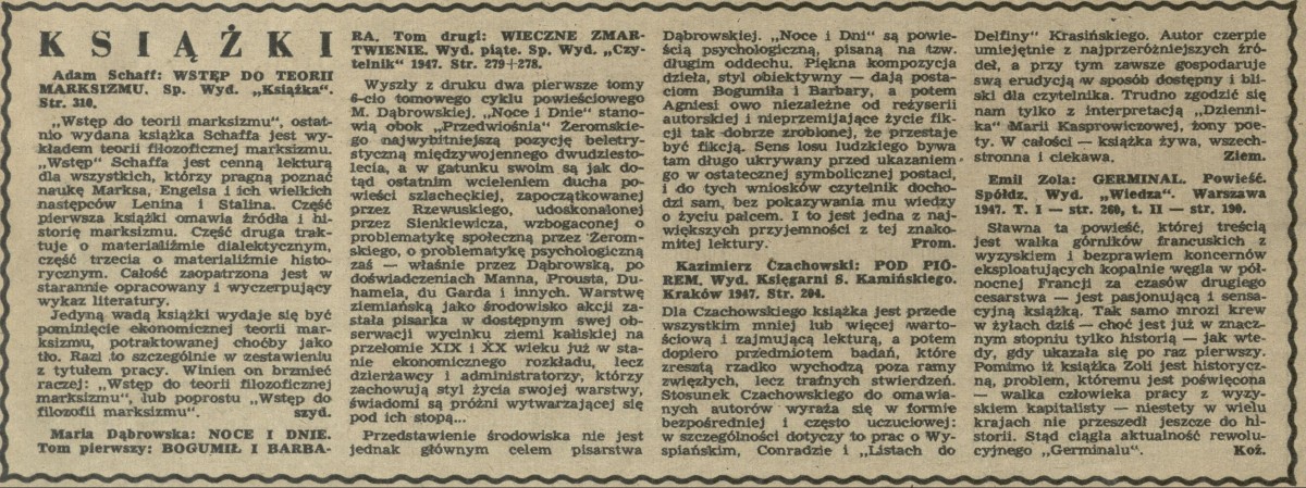 Archiwum / Książki nr 147 (05/1948) 06/60 Podziel się Tytuł Książki Rubryka Książki Artykuł z numeru 147 (5/1948) Data wydania 1 lutego 1948 Tagi Schaff Dąbrowska Czachowski Zola