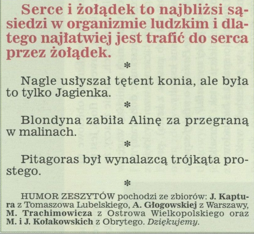 Archiwum / Humor zeszytów szkolnych nr 2706 (18/1997) 16/47 Podziel się Tytuł Humor zeszytów Rubryka Humor zeszytów szkolnych Artykuł z numeru 2706 (18/1997) Data wydania 4 maja 1997 Tagi humor zeszytów szkoła wypracowania