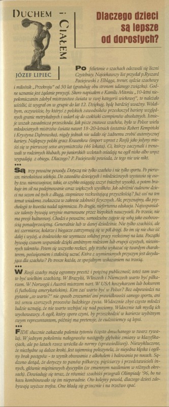 Archiwum / Różności nr 2698 (10/1997) 66/111 Podziel się Tytuł Duchem i ciałem Autor Józef Lipiec Kategoria Różności Artykuł z numeru 2698 (10/1997) Data wydania 9 marca 1997 Tagi ciało duch umysł sport