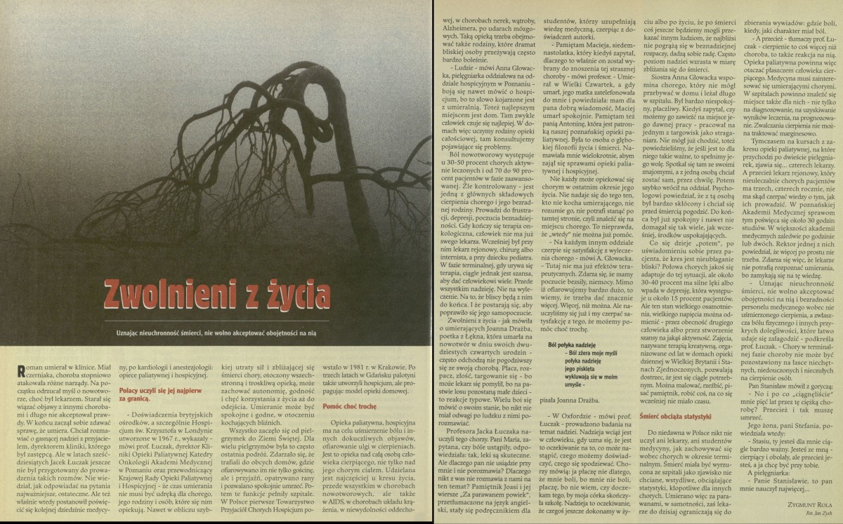 Archiwum / Artykuł nr specjalny 17/1997 1/1 Podziel się Tytuł Zwolnieni z życia Autor Zygmunt Rola Kategoria Artykuł Artykuł z numeru nr specjalny 17/1997 Data wydania 27 kwietnia 1997 Tagi opieka paliatywna hospicjum choroba medycyna filozofia życia i śmierci okres terminalny
