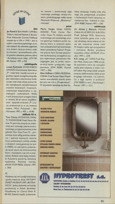 Archiwum / Czytać albo nie czytać? nr 2717 (29/1997) 03/11 Podziel się Tytuł Czytać albo nie czytać? Rubryka Czytać albo nie czytać? Artykuł z numeru 2717 (29/1997) Data wydania 20 lipca 1997 Tagi mario vargas lliosa jan paweł ii lucjan kydryński