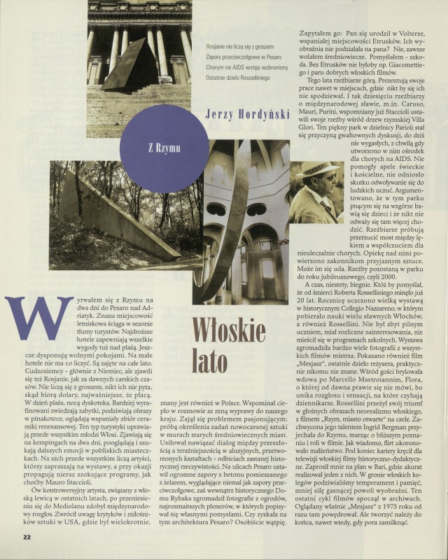 Archiwum / Relacja nr 2719 (31/1997) 80/116 Podziel się Tytuł Włoskie lato Autor Jerzy Hordyński Kategoria Relacja Artykuł z numeru 2719 (31/1997) Data wydania 3 sierpnia 1997 Tagi Rzym