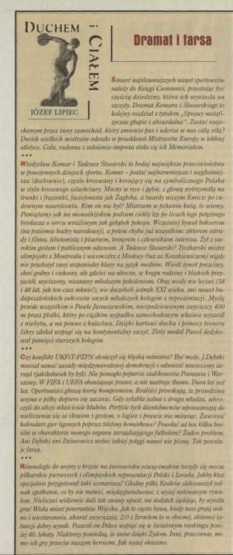 Archiwum / Sport nr 2776 (27/1998) 23919/28129 Podziel się Tytuł Duchem i ciałem Autor Lipiec Józef Kategoria Sport Artykuł z numeru 2776 (2777/1998) Data wydania 6 września 1998