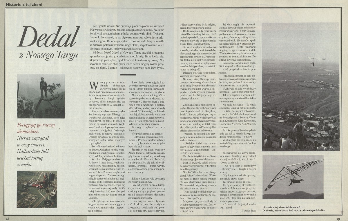 Archiwum / Społeczeństwo nr 2773 (27/1998) 1/1 Podziel się Tytuł Dedal z Nowego Tragu Autor Tomasz Zieja Kategoria Społeczeństwo Artykuł z numeru 2773 (2774/1998) Data wydania 16 sierpnia 1998 Tagi józef Gigoń Nowy Targ latanie