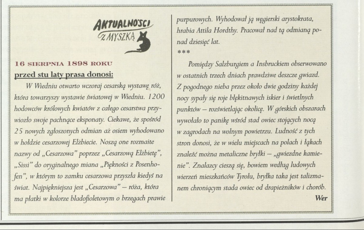 Archiwum / Aktualności z myszką nr 2773 (27/1998) 119414/123969 Podziel się Tytuł Aktualności z myszką Autor wer Rubryka Aktualności z myszką Artykuł z numeru 2773 (2774/1998) Data wydania 16 sierpnia 1998 Tagi aktualności z myszką