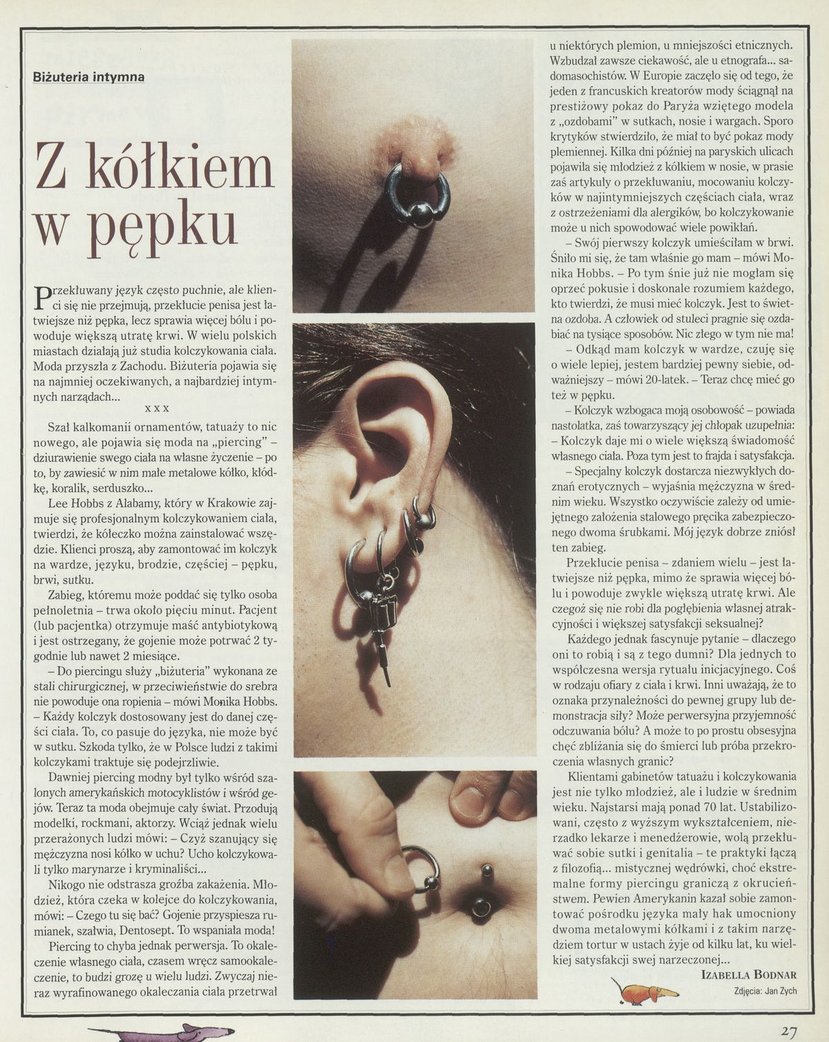 Archiwum / Różności nr 2778 (27/1998) 240/277 Podziel się Tytuł Z kółkiem w pępku Autor Izabella Bodnar Kategoria Różności Artykuł z numeru 2778 (2779/1998) Data wydania 20 grudnia 1998 Tagi piercing kolczyki