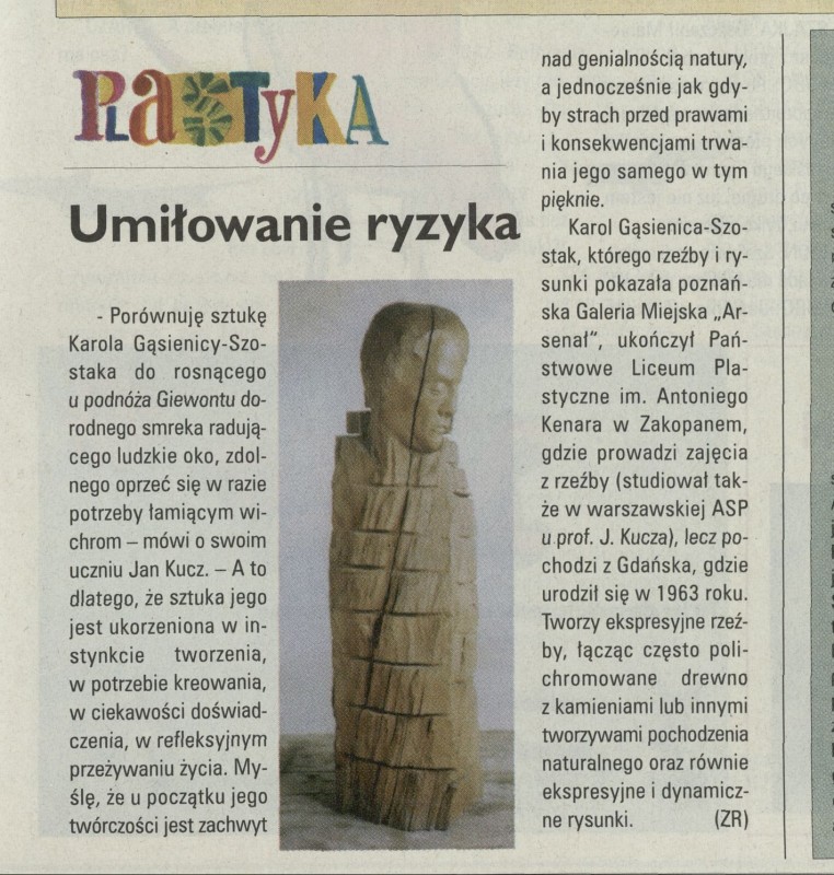 Archiwum / Kultura nr 2778 (27/1998) 04/156 Podziel się Tytuł Plastyka Autor ZR Kategoria Kultura Artykuł z numeru 2778 (2779/1998) Data wydania 20 grudnia 1998 Tagi karol gąsienica-szostak jan kucz