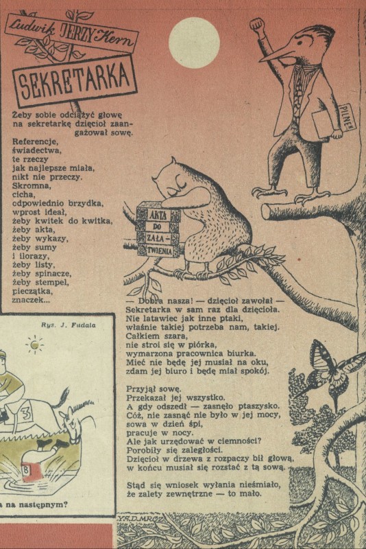 Archiwum / Poezja nr 445 (42/1953) 3/5 Podziel się Tytuł Sekretarka Autor Ludwik Jerzy Kern Kategoria Poezja Artykuł z numeru 445 (42/1953) Data wydania 18 października 1953 Tagi dzięcioł sowa