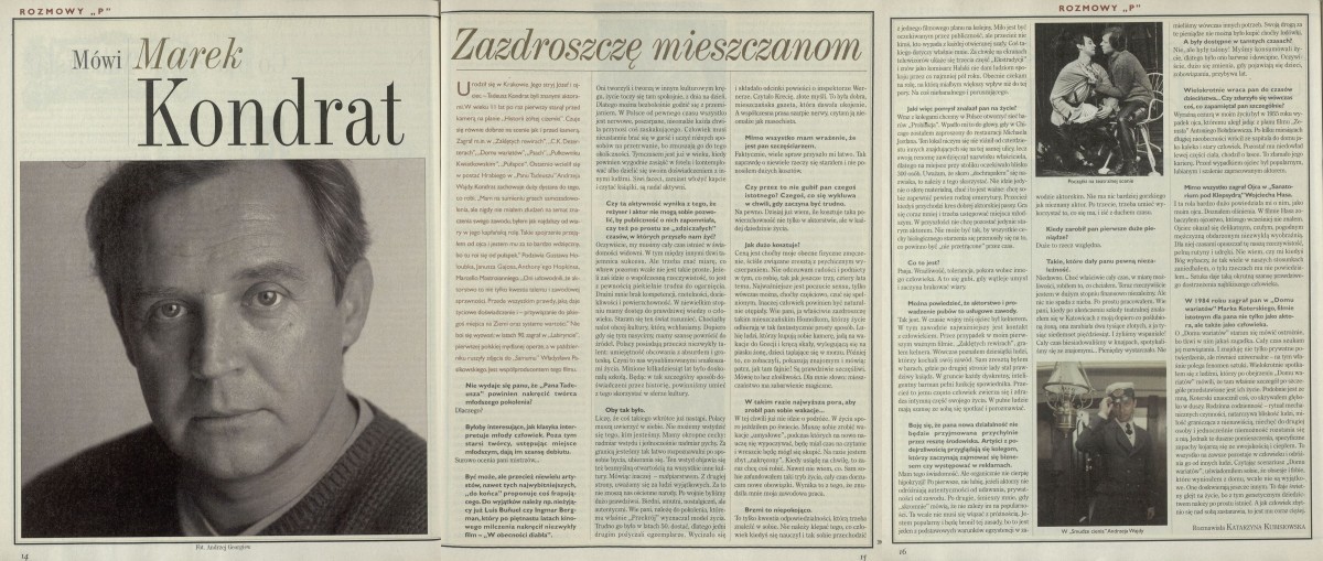 Archiwum / Wywiad nr 2788 (27/1998) 28/186 Podziel się Tytuł Zbliżenia Autor Katarzyna Kubisiowa Kategoria Wywiad Artykuł z numeru 2788 (2789/1998) Data wydania 29 listopada 1998 Tagi Marek Kondrat sylwetki