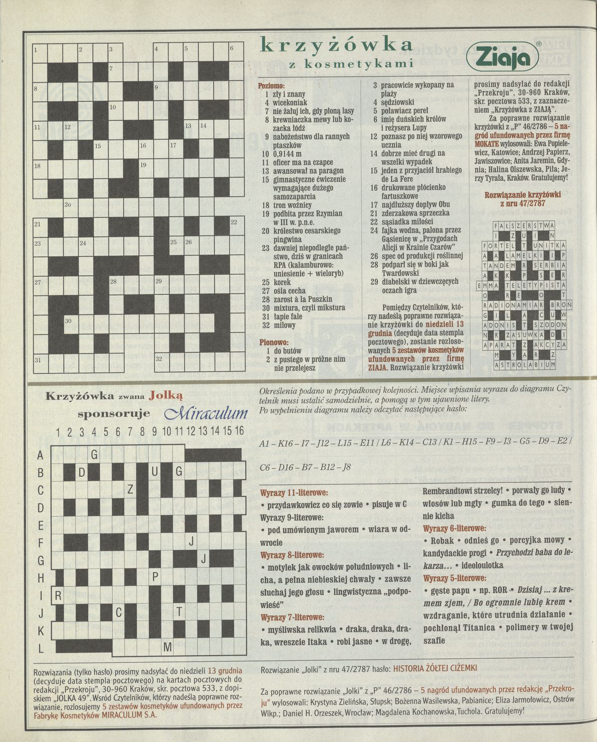 Archiwum / Krzyżówka nr 2789 (27/1998) 711/799 Podziel się Tytuł Krzyżówka z kosmetykami Rubryka Krzyżówka Artykuł z numeru 2789 (2790/1998) Data wydania 6 grudnia 1998 Tagi krzyżówka