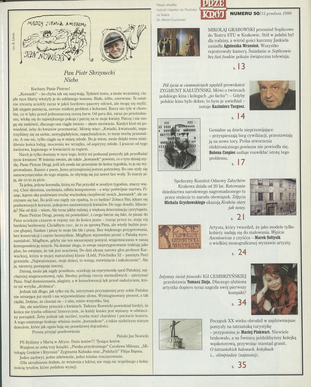 Archiwum / Różności nr 2790 (27/1998) 120422/123969 Podziel się Tytuł [Spis treści] Kategoria Różności Artykuł z numeru 2790 (2791/1998) Data wydania 13 grudnia 1998 Tagi spis treści