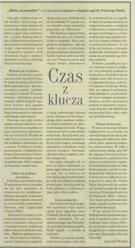 Archiwum / Kultura nr 2809 (28/1999) 91/114 Podziel się Tytuł Czas z klucza Autor Lesław Peters Kategoria Kultura Artykuł z numeru 2809 (2810/1999) Data wydania 25 kwietnia 1999 Tagi astrologia czas Czas z klucza polskie radio