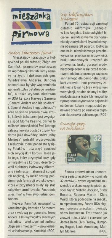 Archiwum / Mieszanka firmowa nr 2812 (28/1999) 21/51 Podziel się Tytuł Mieszanka firmowa Autor Zbigniew K. Rogowski Rubryka Mieszanka firmowa Artykuł z numeru 2812 (2813/1999) Data wydania 16 maja 1999 Tagi mieszanka firmowa