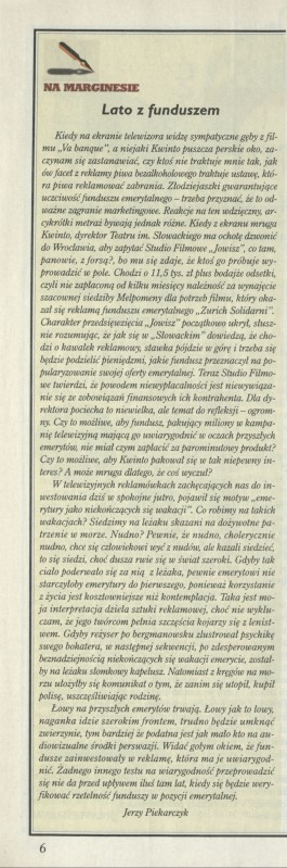 Archiwum nr 2820 (28/1999) 605/631 Podziel się Tytuł Lato z funduszem Autor Jerzy Piekarczyk Artykuł z numeru 2820 (2821/1999) Data wydania 11 lipca 1999 Tagi reklamy