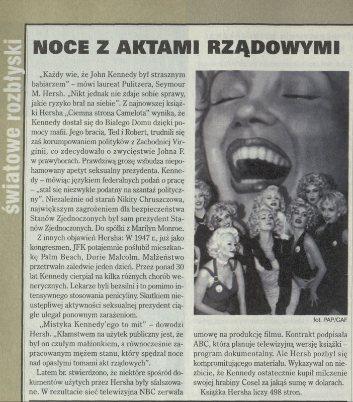 Archiwum / korespondencja własna "Przekroju" nr 2760 (27/1998) 33/271 Podziel się Tytuł Światowe rozbłyski: Noce z aktami rządowymi Rubryka korespondencja własna "Przekroju" Artykuł z numeru 2760 (2761/1998) Data wydania 17 maja 1998