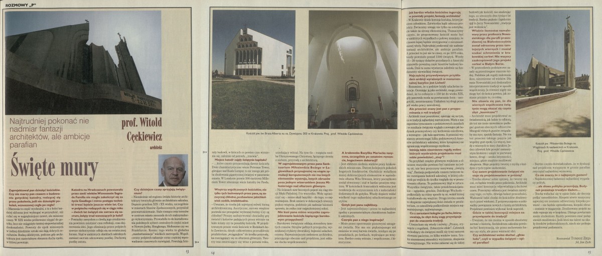 Archiwum / Różności nr 2815 (28/1999) 1/1 Podziel się Tytuł Święte mury Autor Tomasz Zieja Kategoria Różności Artykuł z numeru 2815 (2816/1999) Data wydania 6 czerwca 1999 Tagi witold cęckiewicz architektura