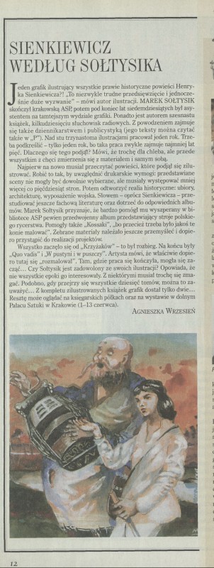 Archiwum / Różności nr 2816 (28/1999) 122093/123969 Podziel się Tytuł Sienkieiwicz według Sołtysika Autor Agnieszka Wrzesień Kategoria Różności Artykuł z numeru 2816 (2817/1999) Data wydania 13 czerwca 1999 Tagi ASP Marek Sołtysik