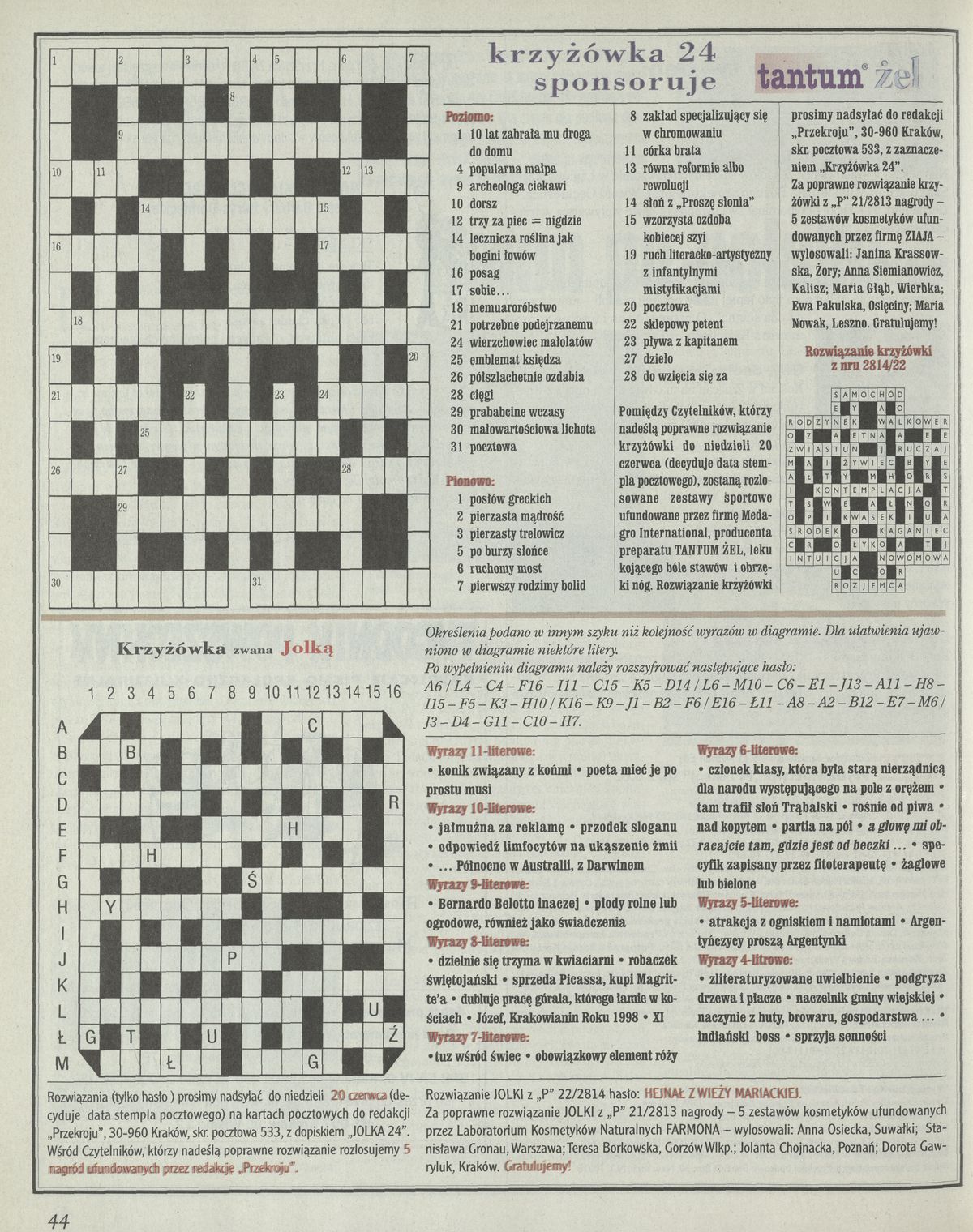 Archiwum / Krzyżówka nr 2816 (28/1999) 122122/123969 Podziel się Tytuł Krzyżówka Rubryka Krzyżówka Artykuł z numeru 2816 (2817/1999) Data wydania 13 czerwca 1999 Tagi krzyżówka