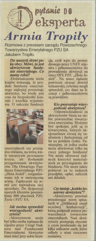 Archiwum / Wywiad nr 2823 (28/1999) 51/76 Podziel się Tytuł Pytanie do eksperta Kategoria Wywiad Artykuł z numeru 2823 (2824/1999) Data wydania 1 sierpnia 1999 Tagi PZU