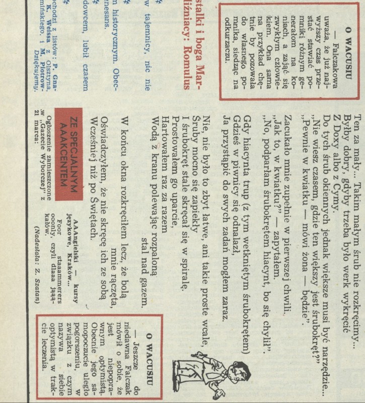 Archiwum / O Wacusiu nr 2443 (24/1992) 02/76 Podziel się Tytuł O Wacusiu Rubryka O Wacusiu Artykuł z numeru 2443 (2444/1992) Data wydania 19 kwietnia 1992 Tagi Falczak