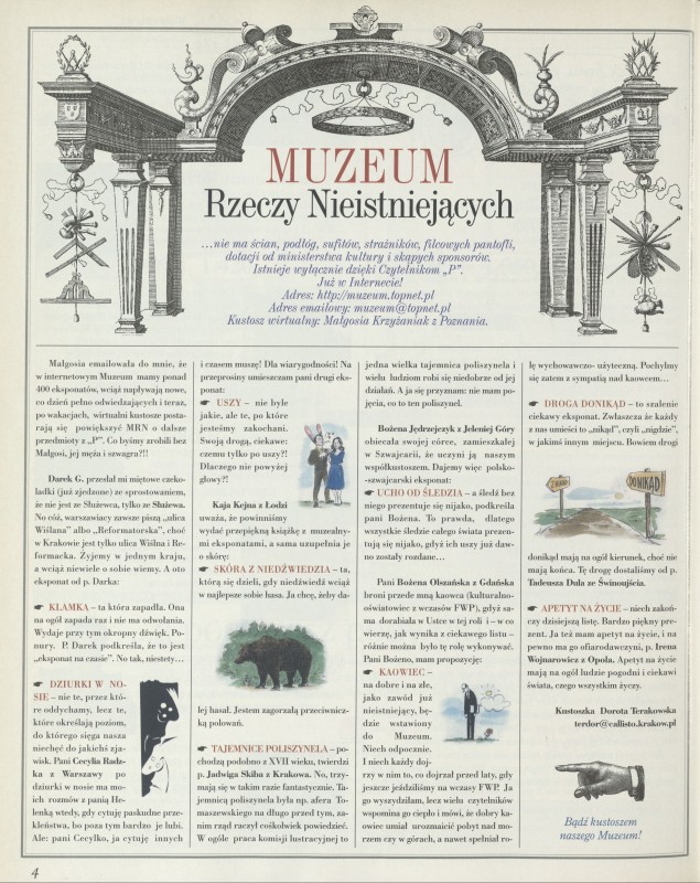 Archiwum nr 2833 (28/1999) 135/148 Podziel się Tytuł Muzeum Rzeczy Nieistniejących Autor Dorota Terakowska Artykuł z numeru 2833 (2834/1999) Data wydania 10 października 1999 Tagi kaowiec
