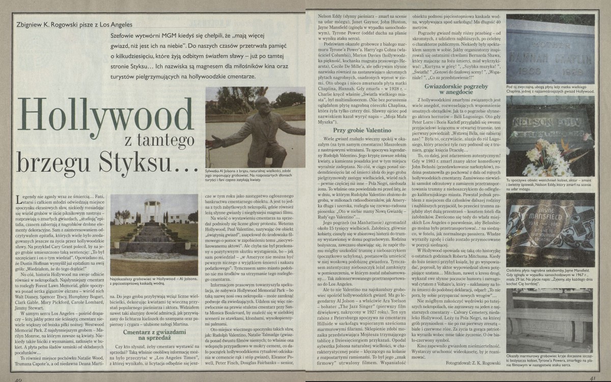 Archiwum / korespondencja własna "Przekroju" nr 2769 (27/1998) 09/16 Podziel się Tytuł Hollywood z tamtego brzegu Styksu Autor Zbigniew K. Rogowski Rubryka korespondencja własna "Przekroju" Artykuł z numeru 2769 (2770/1998) Data wydania 19 lipca 1998 Tagi Los angeles