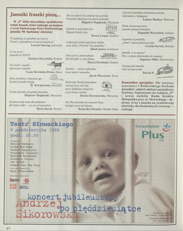 Archiwum / Fraszki nr 2833 (28/1999) 123196/123969 Podziel się Tytuł Jamniki fraszki piszą .. Rubryka Fraszki Artykuł z numeru 2833 (2834/1999) Data wydania 10 października 1999 Tagi fraszki